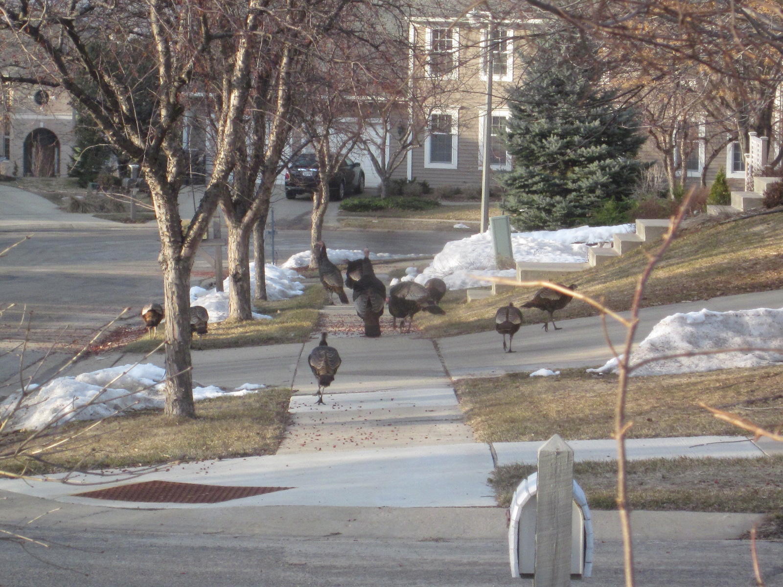 even if there IS snow in the forecast for next week. Spotted when I got home was my most recent neighborhood wildlife sighting ... wild turkeys.