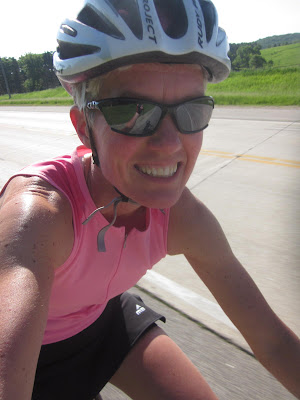 I rode to ... Salem Corners, Byron, Pine Island (was going to go to Wasioja but decided I didn't want to go any further west with the east wind), Douglas, Genoa (yes, UP Genoa hill ... I'd actually rather go up than down ... ), Byron, Salem Corners. Nice loop. Nice ride. However, I left sometime after 8:30 without having breakfast. Just a handfull of animal crackers and a piece of bread with jam. I had 2--90 calorie granola bars with me, but it wasn't enough. By 43 miles, I was bonking. But I made it OK. I was happy to get home, though.